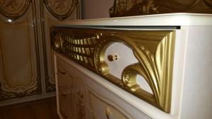 Спальня Кармен Новая Люкс , производство фабрики Svit Mebliv (Світ Меблів), Украина. Коллекция Кармен Новая с первого взгляда привлекает своим богатым декором, роскошными формами и нежным благородным цветом. Шикарный внешний вид и максимальная практичность делают эту мебель идеальной для создания комфортного и красивого интерьера спальни. "Изюминка" этой спальни – оригинальные мягкие 3D накладки на кровати, шкафы, зеркале, в сочетании с рисунком и патинированием.
